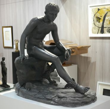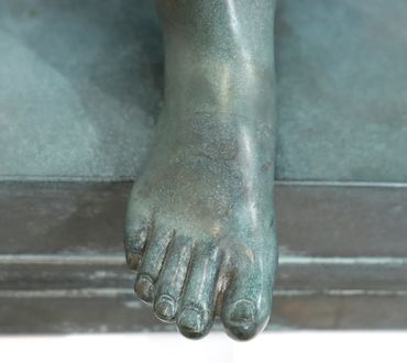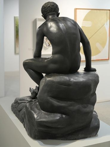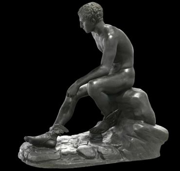 The Archer is Geyger’s most celebrated work. The Gladenbeck foundry acquired the rights to cast reductions in bronze and edited them in three sizes, with one such model appearing on the front of their 1903 catalogue. While Geyger's inspiration ultimately derives from antiquity and more specifically from an ancient torso of a wrestler in Berlin, his particular achievement lies in the fresh and modern reinterpretation of the Ideal, harnessing a stylised male physique in a composition full of the undiluted energy in the split second before the release of the archer’s arrow.