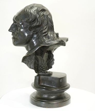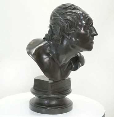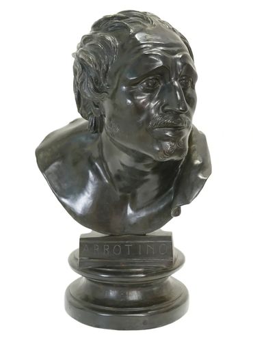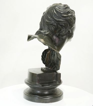 This extraordinary work has a strong presence, as the artist has projected the head forward…which renders a dynamic and energized bust that is rarely found.