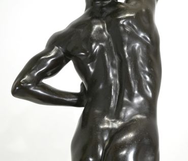 The Archer is Geyger’s most celebrated work. The Gladenbeck foundry acquired the rights to cast reductions in bronze and edited them in three sizes, with one such model appearing on the front of their 1903 catalogue. While Geyger's inspiration ultimately derives from antiquity and more specifically from an ancient torso of a wrestler in Berlin, his particular achievement lies in the fresh and modern reinterpretation of the Ideal, harnessing a stylised male physique in a composition full of the undiluted energy in the split second before the release of the archer’s arrow.